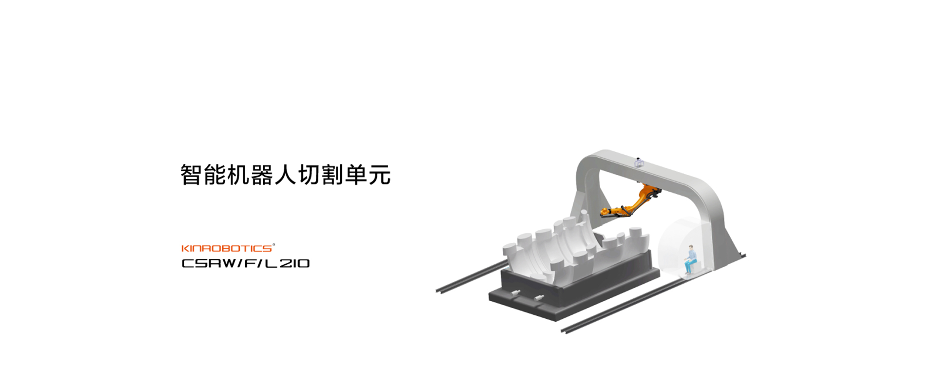 機器人切割單元是針對中大型鑄件,利用機器人帶切割工具對鑄件的澆冒口切割而專門設計的產品。設置 X 軸增大機器人的可達性。龍門框架結構和倒裝機器人的組合使用,提高加工過程的靈活性,機器人末端采用了組合切割頭的設計,可按工藝需求在片切割、火焰切割、和激光切割間進行快速變位。使之適應性更強、切割效率更高。工件最大重量120000kg。