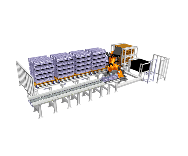 機(jī)器人自動(dòng)上下料包裝系統(tǒng)是一套多功能的系統(tǒng)。旨在替代人工搬運(yùn)、碼垛,生產(chǎn)上能迅速提高效率和產(chǎn)量,同時(shí)能減少人工搬運(yùn)造成的差錯(cuò)。